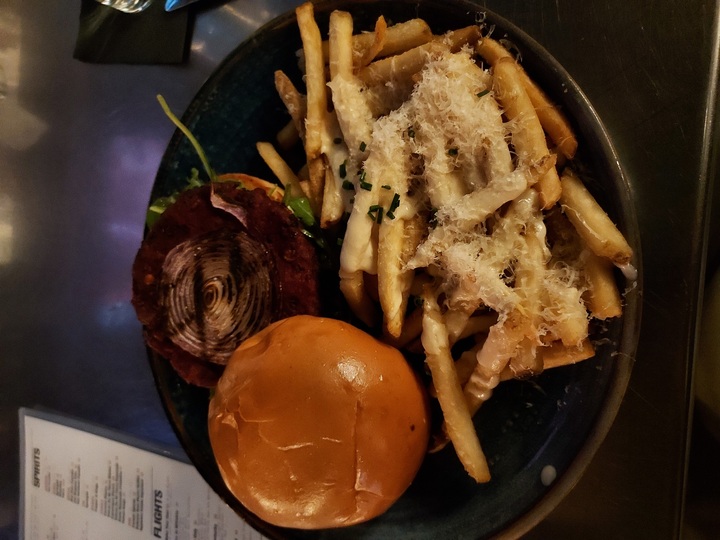 The Parmesan cheese and truffle sauce pair really well together. They also provide some much-needed moisture to the burger. Don’t eat too many without a glass of water on hand though. Even if they have enough to help out the burger, the saltiness from the cheese is a slow acting drying agent in your mouth.